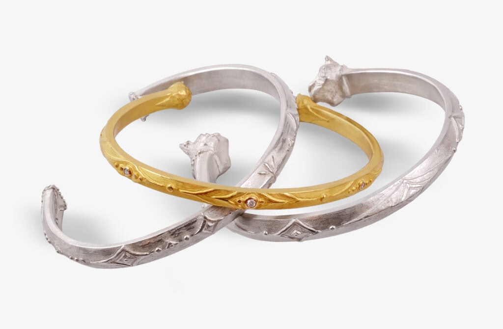 In den Vitrinen meines Ateliers tummelt sich mein ganz persönlicher Zoo. Am Morgen kräht der Hahn, mittags brüllt der Löwe, abends zeigt sich die Eule. Mit besonderer Freude und Hingabe modelliere ich bis ins kleinste Detail Tier-Anhänger, die kleinen Skulpturen gleichen. Sie liegen mir besonders am Herzen. Gerne fertige ich für meine Kunden ihr persönliches Lieblingstier an. Von der Maus bis zum Elefanten, vom Pferd bis zum Nilpferd, vom Hund bis zum Seehund, von der Kröte zur Schildkröte. Auch der sagenumwobene Wolpertinger darf dabei nicht fehlen. Jedes Jahr gesellen sich neue Tiere zu meinem Privatzoo hinzu. Entweder als Sonderwunsch eines Kunden oder aber, weil sich der Pinguin einen Eisbären als Freund wünscht. Das ein oder andere Tier macht sich auch gerne für seinen Träger hübsch, zum Beispiel mit funkelnden Edelsteinaugen.